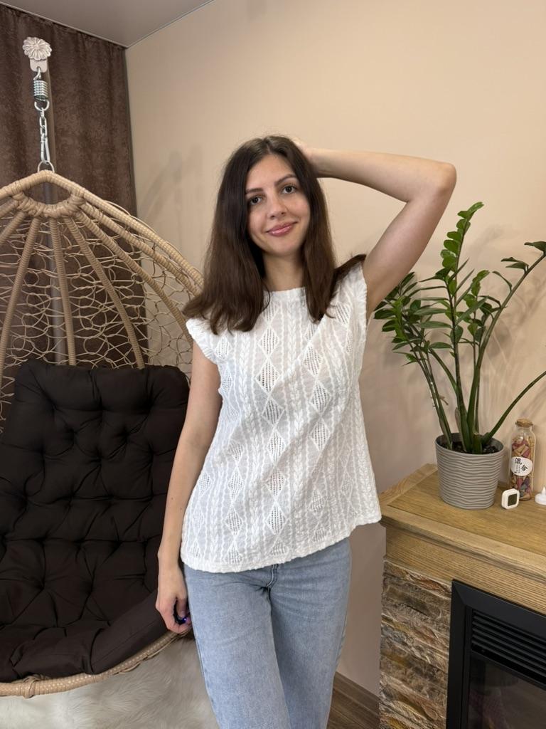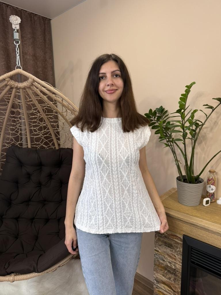 ❤️👍Летняя белая кофточку с ажурным узором Заказала эту кофточку на лето — и осталась очень довольна! На параметры 90-60 размер М подошёл идеально: сидит свободно, но не мешковато. Ткань не тонкая, дышащая и приятная к телу. Материал хорошо держит форму и не мнётся. Ажурный узор смотрится очень нежно и женственно, особенно в сочетании с загаром. Рукавчики придают образу романтичность, а вырез аккуратный, не слишком глубокий. Белый цвет универсален — легко комбинируется с любой одеждой: джинсы, шорты, юбки. Качество пошива хорошее, все швы ровные, нитки не торчат. Стильная, удобная и очень красивая летняя кофточка. Рекомендую к покупке, особенно тем, кто ищет для повседневной носки или прогулок!