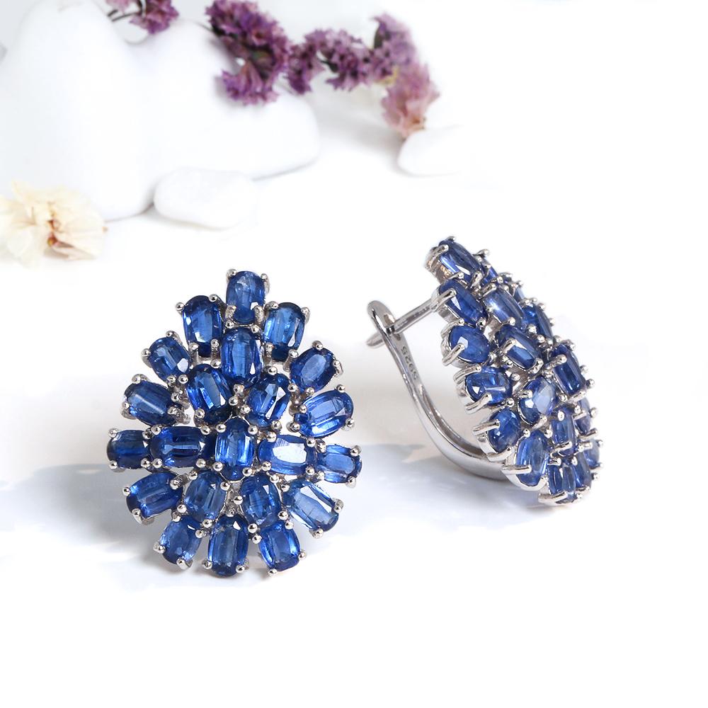 Супер роскошный дизайн с множеством драгоценных камней Натуральный голубой кианит Большие серьги из серебра 925 пробы элегантная женская свадебная и банкетная одежда