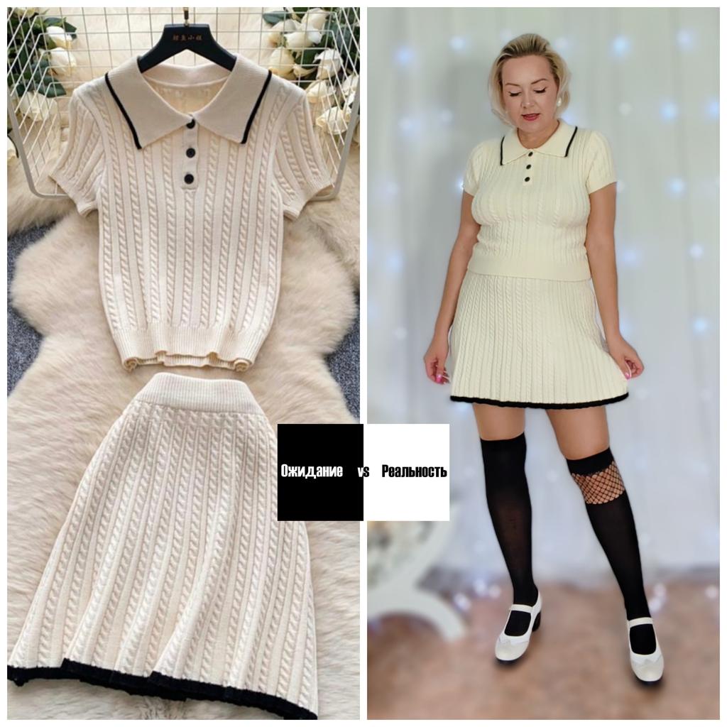 Классный костюм из мягкого трикотажа! Получила его давно, но решила показать именно сейчас в предверии сезона, когда он будет особенно актуальным. Ткань : Мягкий трикотаж, хорошо тянется, в составе чувствуется вискоза. Дизайн: Состоит из двух предметов: Поло с характерным воротником и пуговками. И юбки трапеции с резинкой на талии. Размер: На мне единый размер. Мои параметры : рост 172 см 98/76/106 см Детали: Поло: Длина 49 см Плечи 35 см Длина рукава 18 см ОТ 84 до 134 см Юбка: Длина 46 см ОТ 56 до 126 см Резюмирую: Классный костюм, в меру тёплый, уютный, самое то на осень! Рекомендую 👍 Я не прощаюсь, M_K #костюм_бежевый_трикотаж