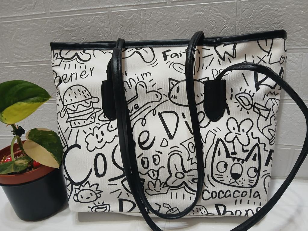 Сумка из холста с граффити, женские сумки 2025 года, новая повседневная сумка через плечо, универсальная сумка-тоут большой вместимости для студентов и школьников