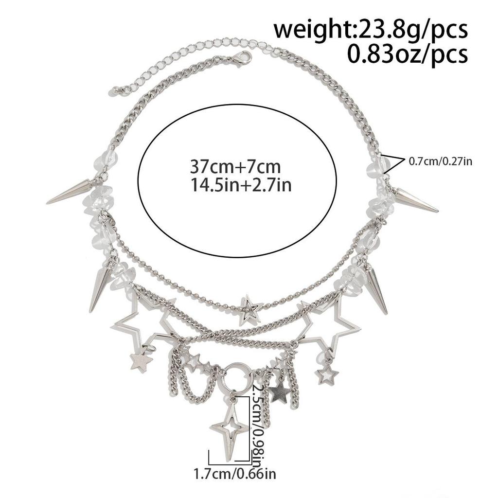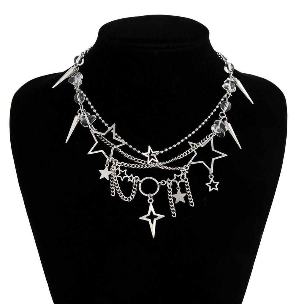 Ожерелье с цепочкой из бисера и пентаграммы с кисточками, нишевый дизайн, хип-хоп стиль, цепочка на ключицу, преувеличенная многослойная, нерегулярная, сложенная женское ожерелье