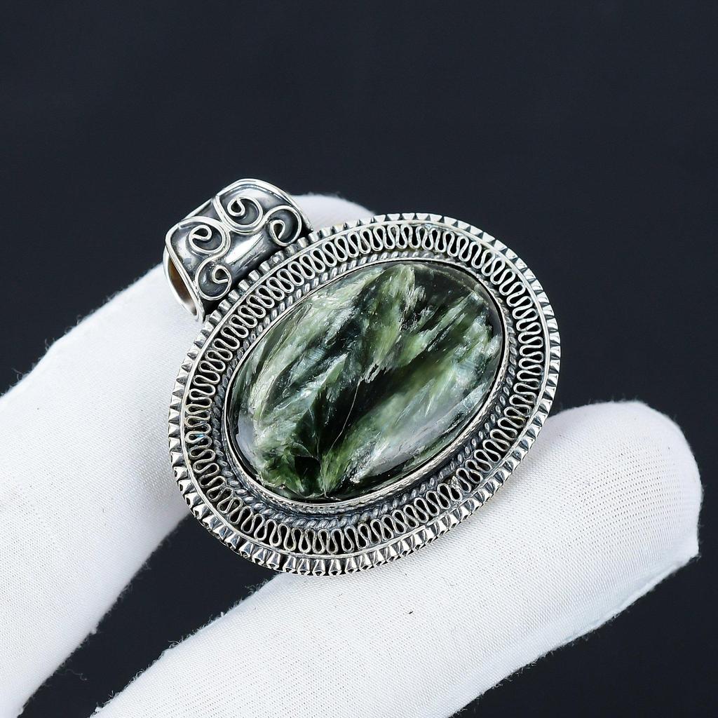 Серебряный кулон с натуральным драгоценным камнем серафинитом из серебра 925 пробы — дизайн ручной работы, повседневные украшения, антикварные кулоны в подарок для нее