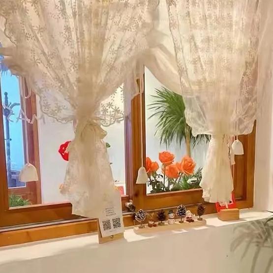 WTEMPO 2 шт., французская пасторальная кремовая занавеска с вышивкой, кружевная занавеска для окна спальни, перфорированная занавеска