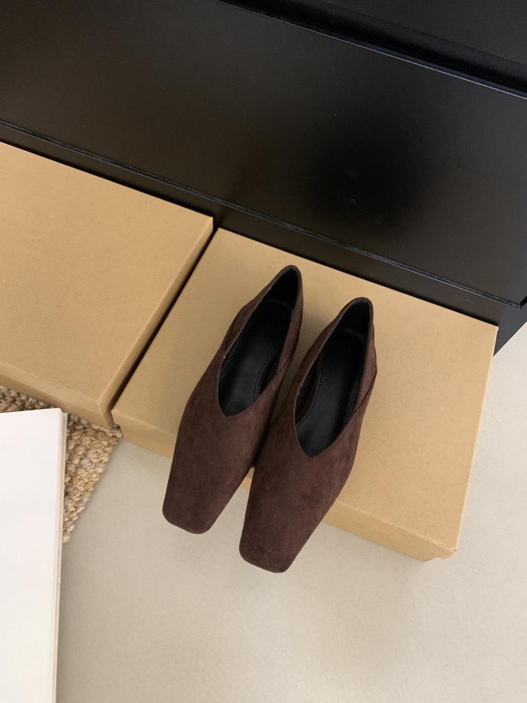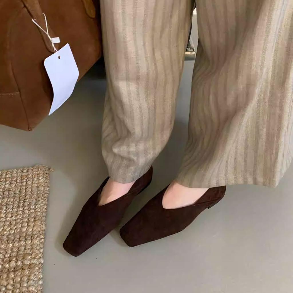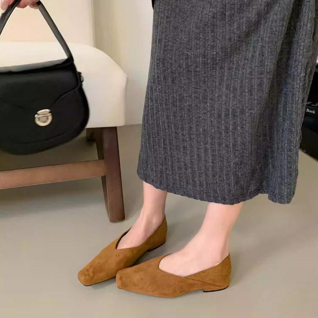 Французские ретро-замшевые туфли с квадратной головкой и неглубоким носком, женские туфли 2024 года, новые осенние туфли на плоской подошве для поездок на работу