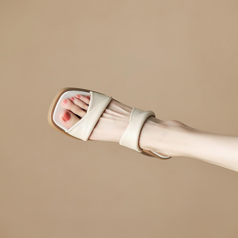 Однотонные классные тапочки на толстой подошве и толстом каблуке для женской верхней одежды, лето 2025, новые босоножки с открытым носком и высоким каблуком