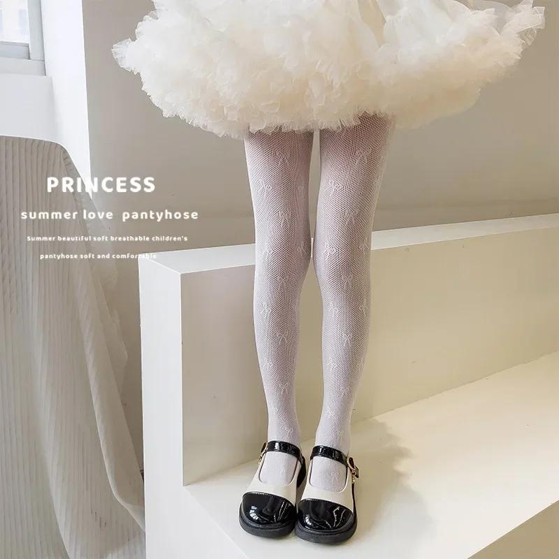 Милые детские леггинсы-чулки принцессы, модные милые колготки с большим бантом для детей, летние тонкие дышащие полые носки