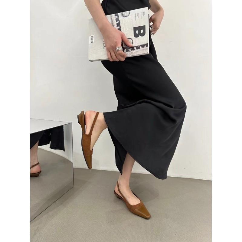 2024 весна и лето новые квадратные замшевые босоножки с плоским дном и замшевой головкой-мешком на низком каблуке удобные туфли с плоским каблуком и неглубоким носком женские