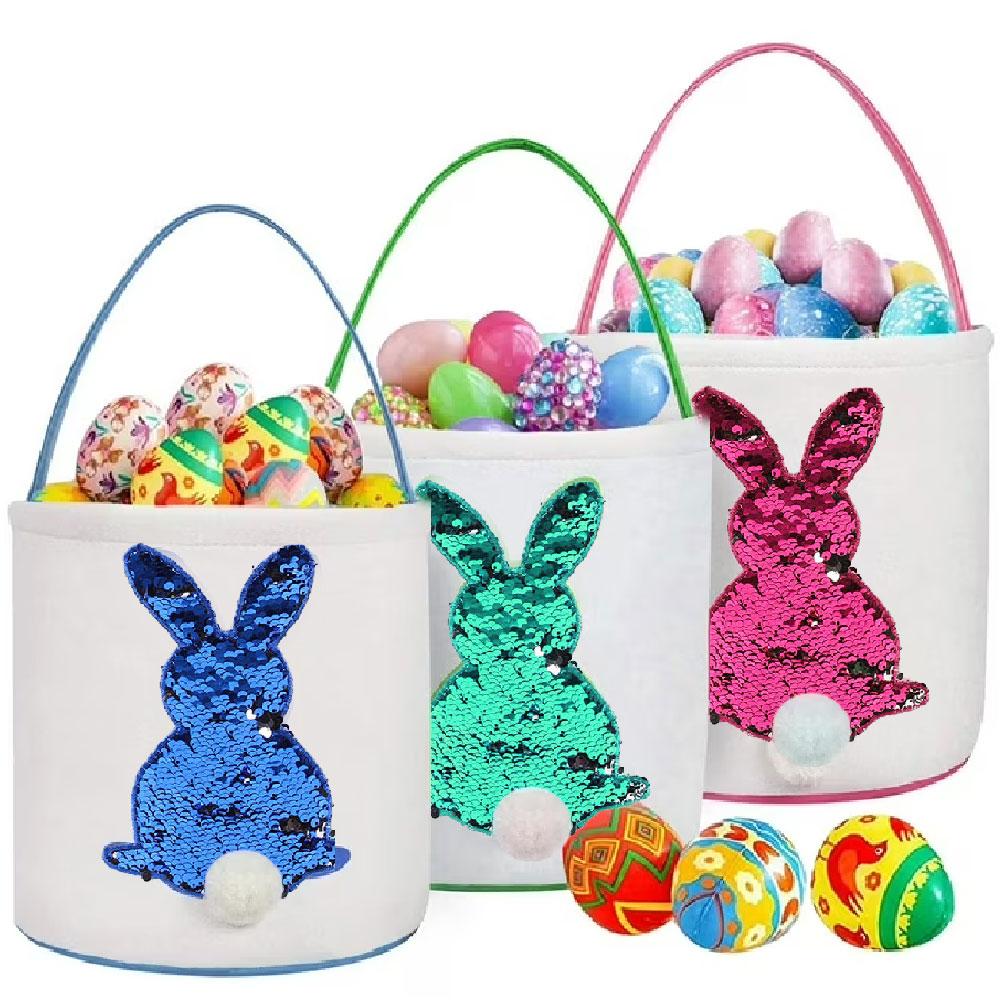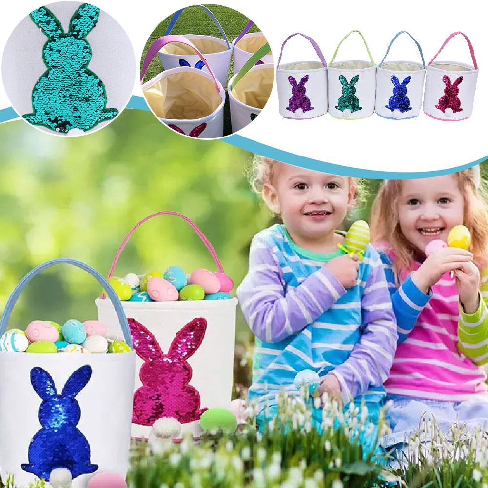 Пасхальная сумка для кролика своими руками, пасхальная корзина ручной работы, холщовая корзина, украшение из блесток, сумка для кролика, вышивка J3K1