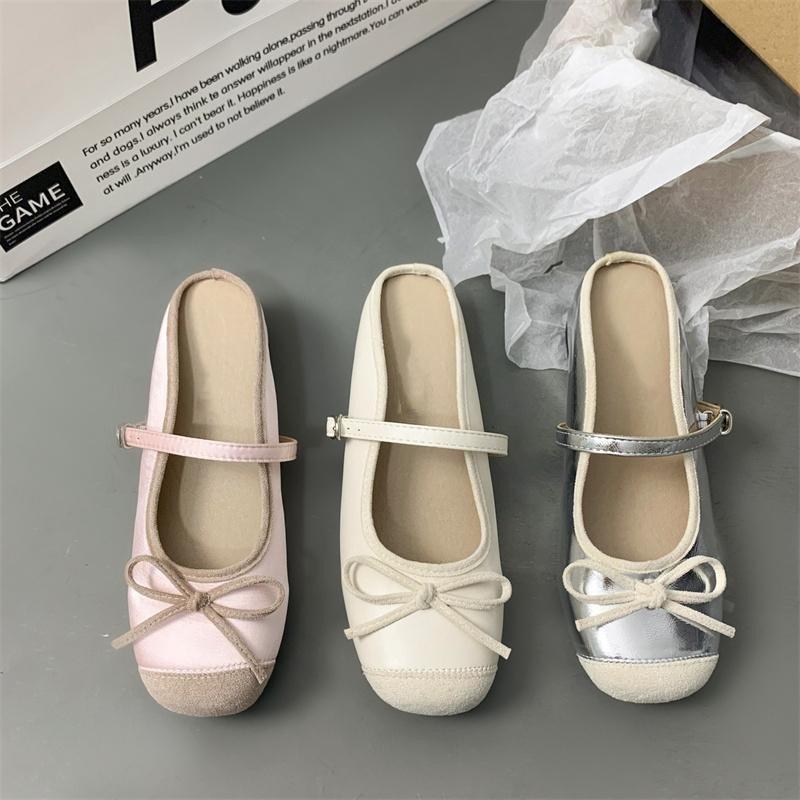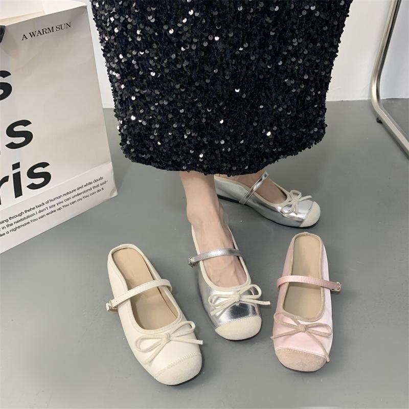 Тапочки-полушапки с бантом и внутренним увеличением, женская верхняя одежда весна-лето 2025, новые туфли с атласной лицевой стороной