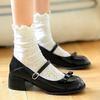 Ретро! Французские туфли Мэри Джейн из мягкой кожи 2024 новый круглый носок толстый каблук бант ремешок с пряжкой на одну пуговицу французские одинарные туфли