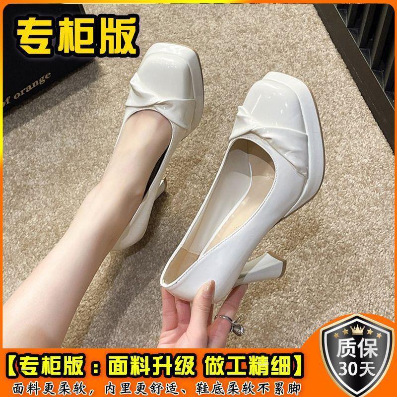 2025 весна и лето новый стиль феи с юбкой высокие каблуки шпильки квадратная головка нишевый дизайн французский темперамент одиночные туфли