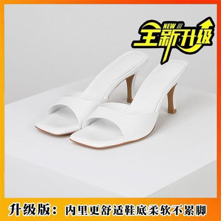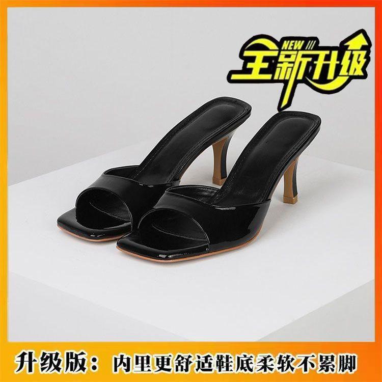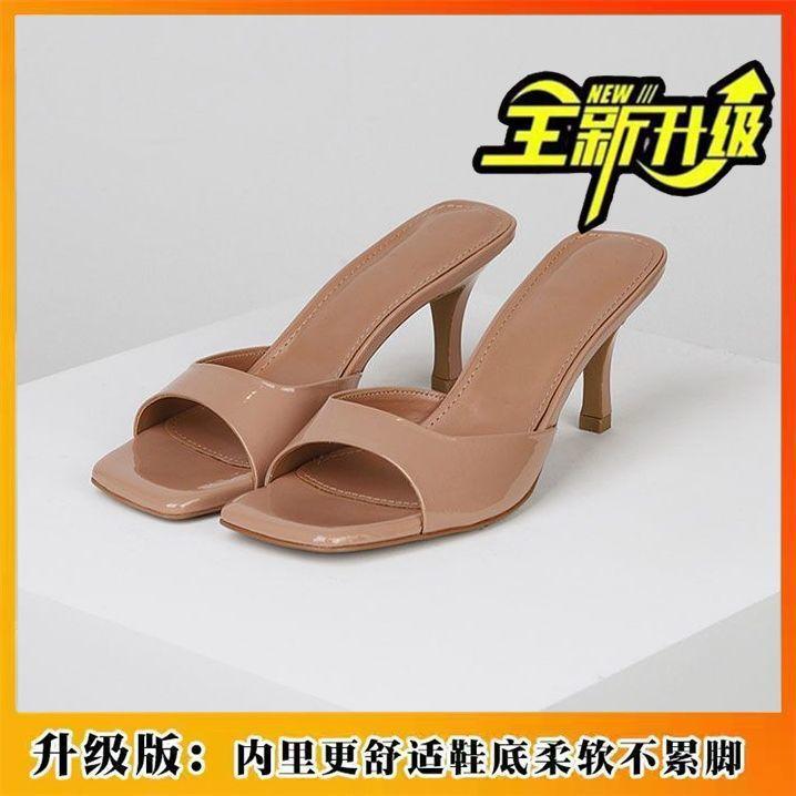 Корейская версия женских босоножек с увеличенным голенищем, лето 2024, новые модные универсальные босоножки на высоком каблуке с квадратной головкой и нескользящими тапочками