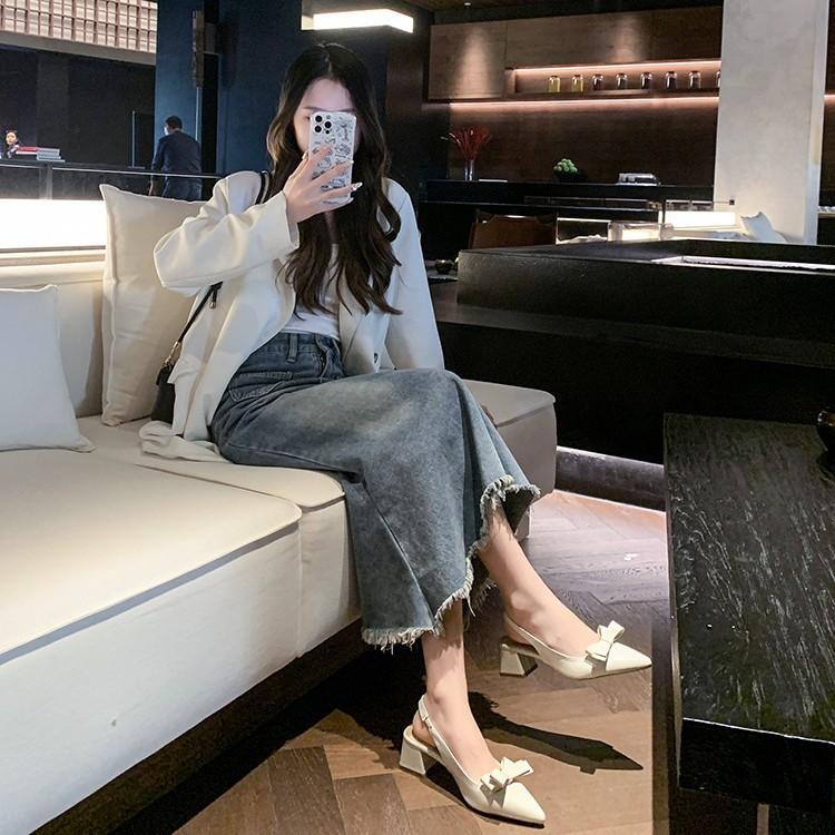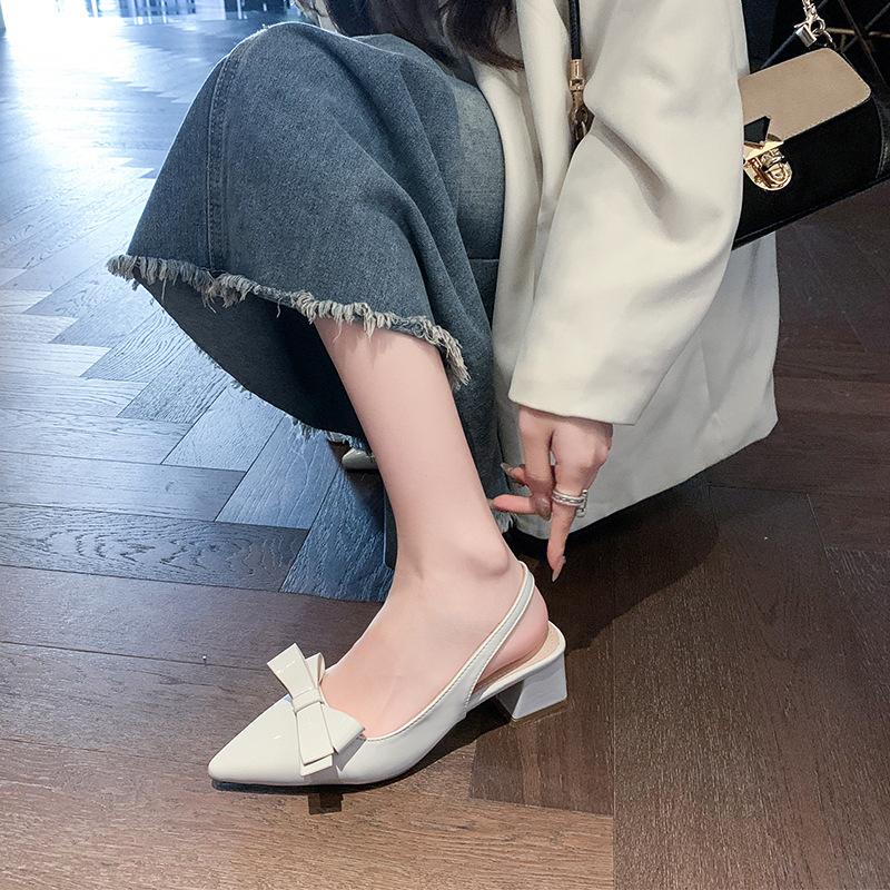 Женские туфли на высоком каблуке 2025 весна и лето новая модная универсальная женская обувь повседневная бант острый носок французские одинарные туфли женские
