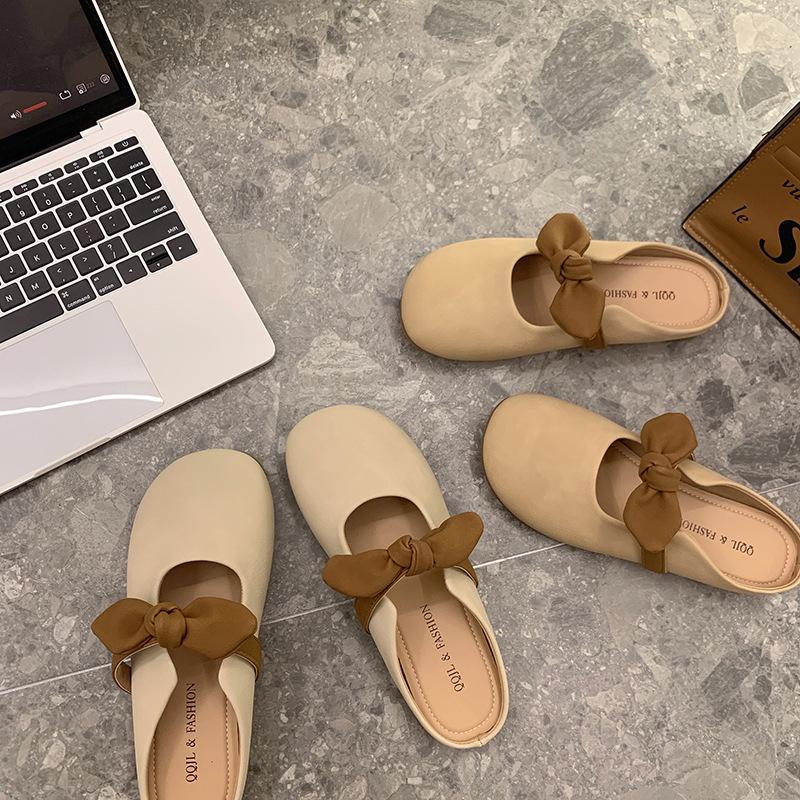 Тапочки Baotou, женская верхняя одежда, плоская подошва, весна-лето, новый дизайн с бантом, ниша, одна педаль, мягкая подошва, классные тапочки