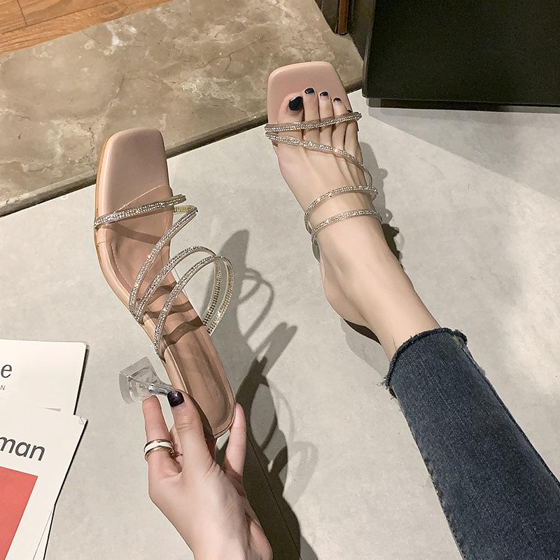 Французские босоножки со стразами на толстом каблуке, женская летняя одежда 2025 года, новые феерические босоножки высокого класса на высоком каблуке