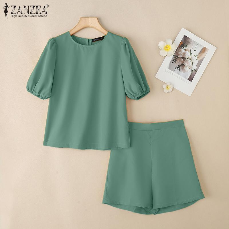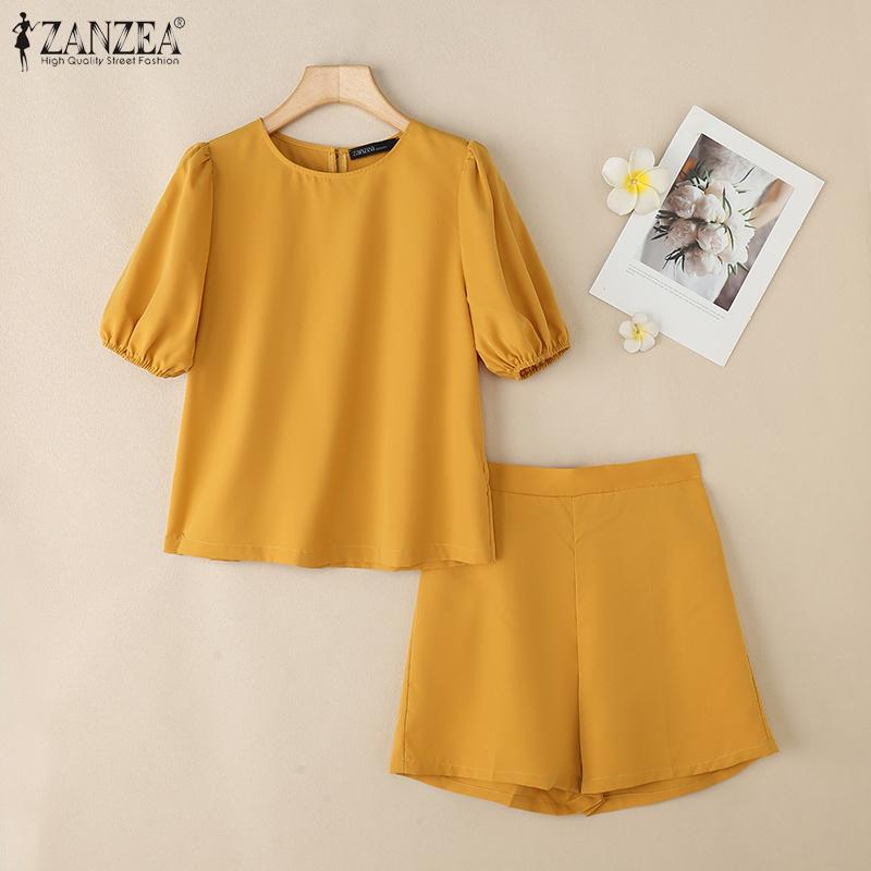 ZANZEA Женский летний повседневный костюм из двух частей с коротким рукавом и шортами