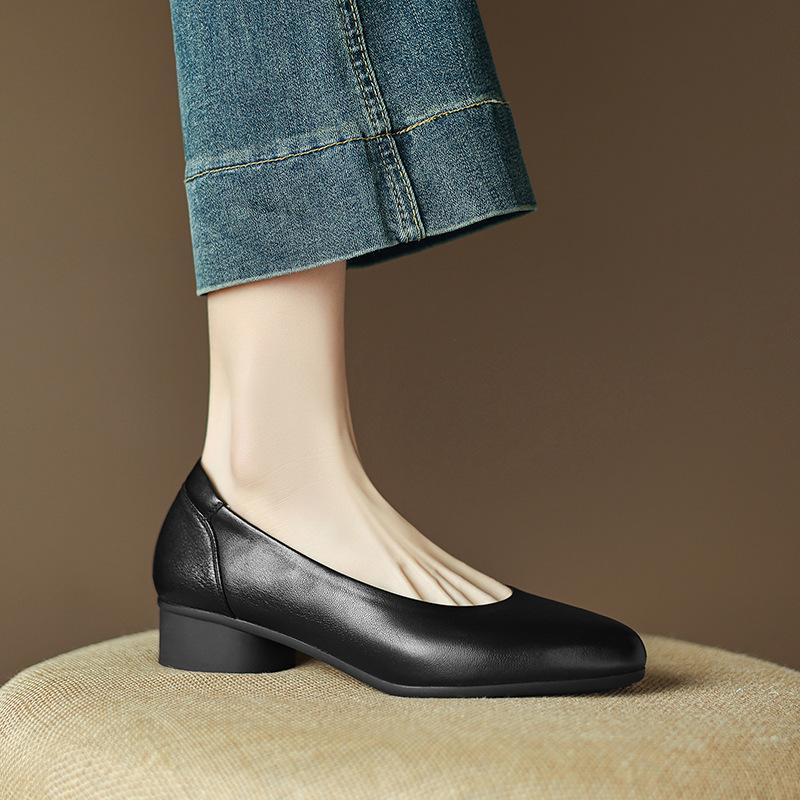 2025 весенние легкие роскошные туфли из овчины для бабушки, заостренные туфли на толстом каблуке среднего каблука, туфли в стиле ретро, универсальные туфли на высоком каблуке для женщин — купить товар онлайн с бесплатной доставкой до всему миру!