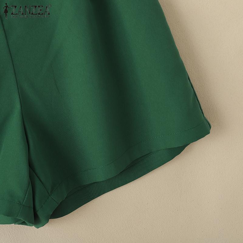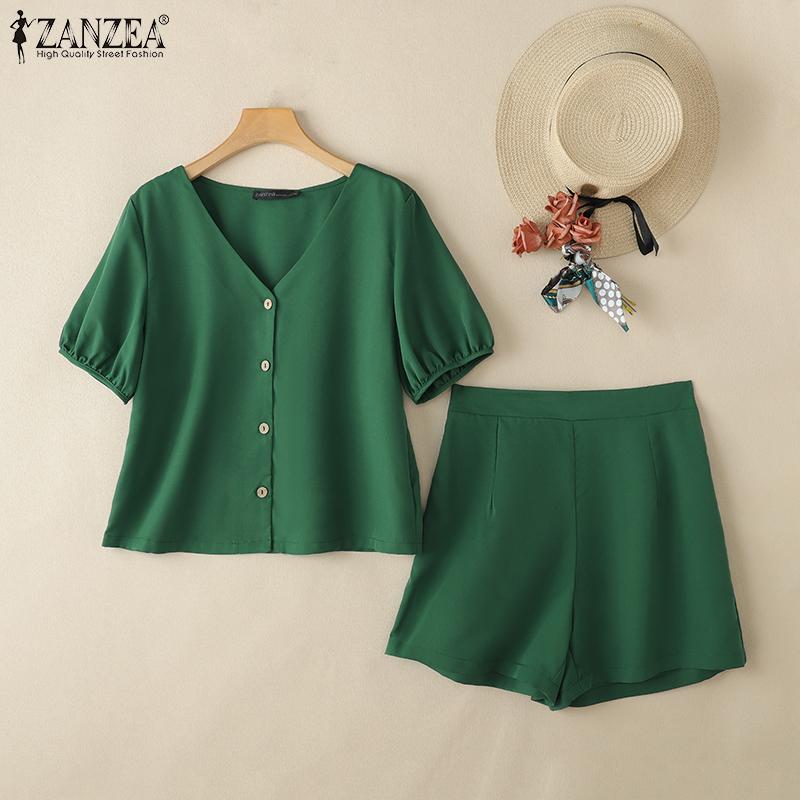 ZANZEA Женская блузка с коротким рукавом и шорты, летние повседневные комплекты из двух предметов