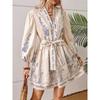 V-образный вырез модный принт талия длинный рукав платье для женщин