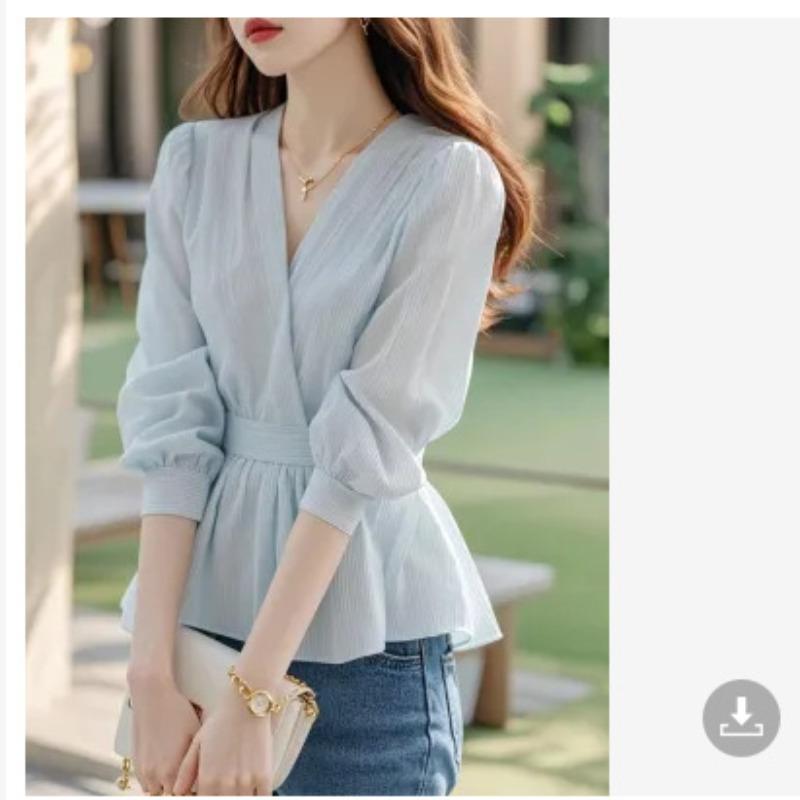 Новый топ ранней осени для женщин во французском стиле, легкая роскошная рубашка в полоску из нежно-голубого шифона, уменьшающая возраст