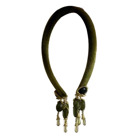 Подчеркните свой стиль с помощью нашей модной повязки на голову с бархатными кисточками — универсального аксессуара, который добавит нотку ретро-очарования любому наряду.