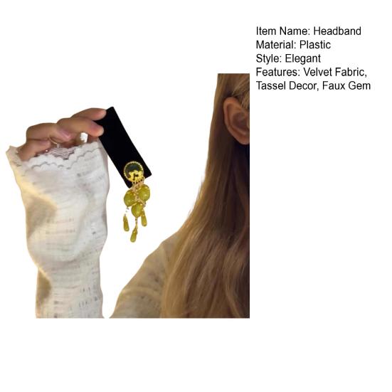 Улучшите свой стиль с помощью этой модной и универсальной повязки на голову, которая дополнит любой наряд, добавив нотку элегантности.. Этот ободок в стиле ретро, выполненный из ткани с бархатистой поверхностью, украшен очаровательными кисточками на обоих концах, которые при ношении напоминают элегантные серьги..