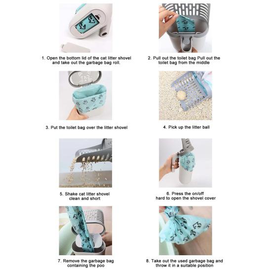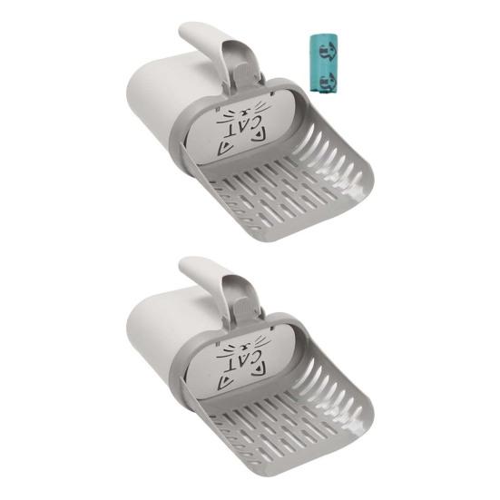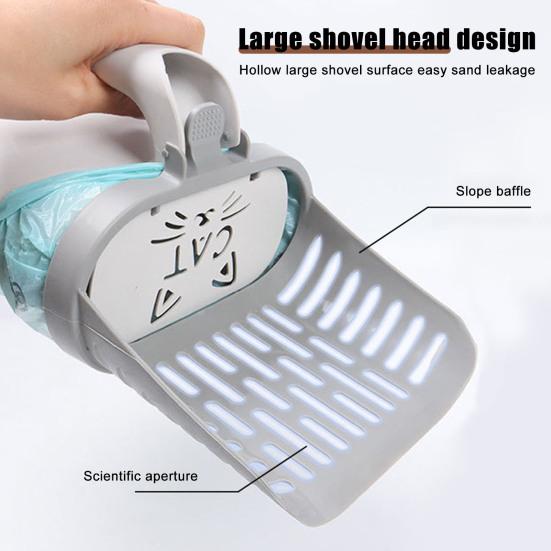 Интегрированный дизайн: Совок для кошачьего туалета со встроенным мусорным контейнером для удобства использования, экономии места и легкой уборки отходов жизнедеятельности домашних животных.
