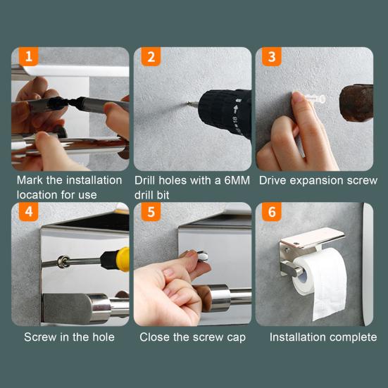 Изготовленный из нержавеющей стали, этот держатель для туалетной бумаги не только стильный, но и водонепроницаемый, устойчивый к ржавчине, прочный и устойчивый к деформации.. Легко устанавливается с помощью входящих в комплект крепежных винтов, его можно надежно закрепить на любой поверхности стены..