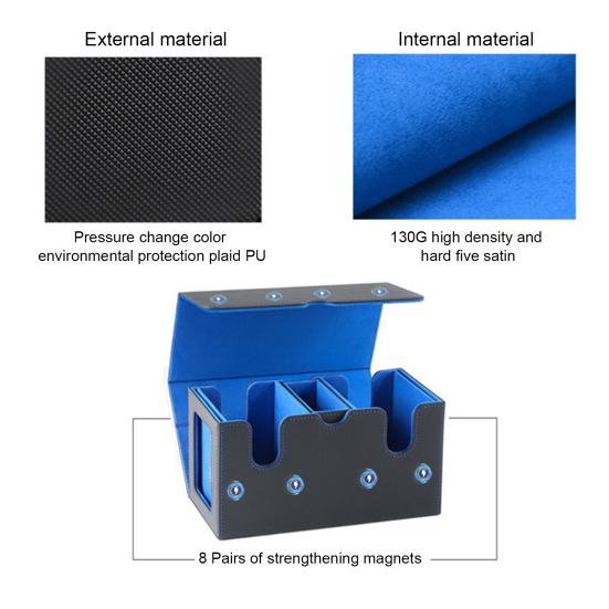 Храните свои игровые карты в безопасности и порядке с помощью нашего бокса для хранения карт.. Благодаря прочному магнитному замку эта коробка надежно сохранит ваши карты на месте даже во время транспортировки.. Высококачественная конструкция из искусственной кожи обеспечивает отличную защиту от ударов и пыли, а мягкая подкладка из микрофибры предотвращает появление царапин.