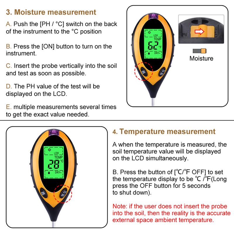 4 в 1 измеритель pH влаги для измерения солнечного света для газонов садовых растений