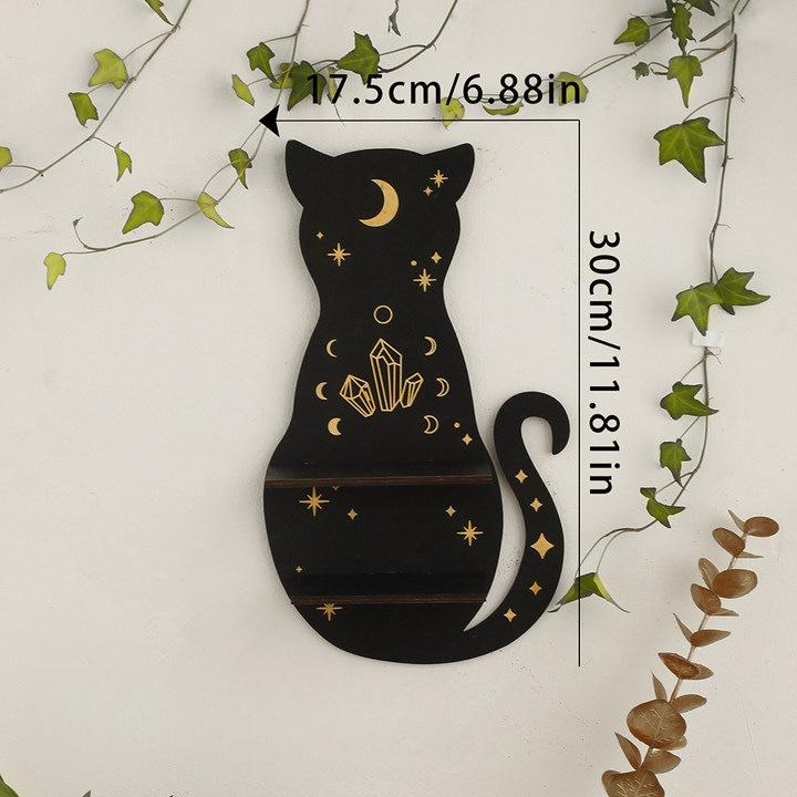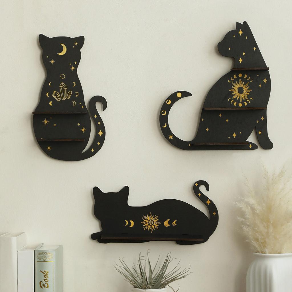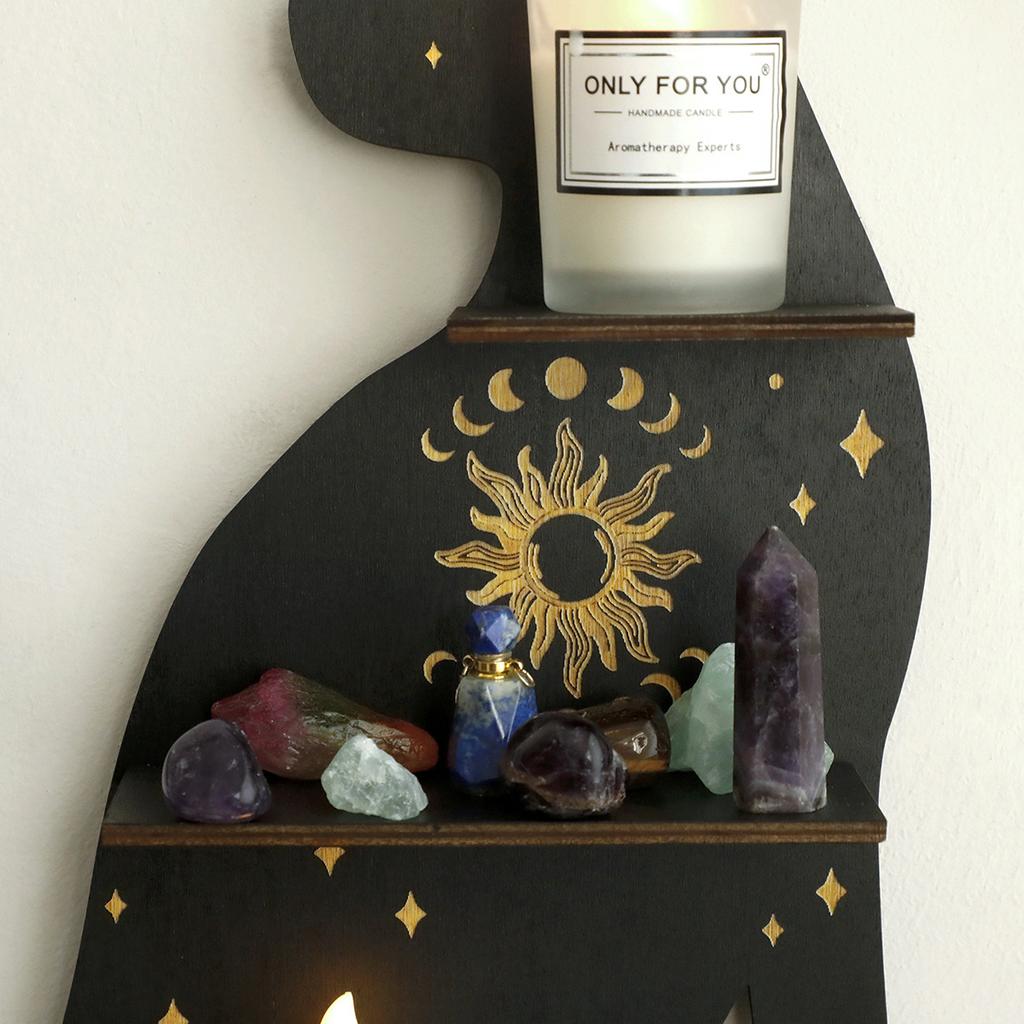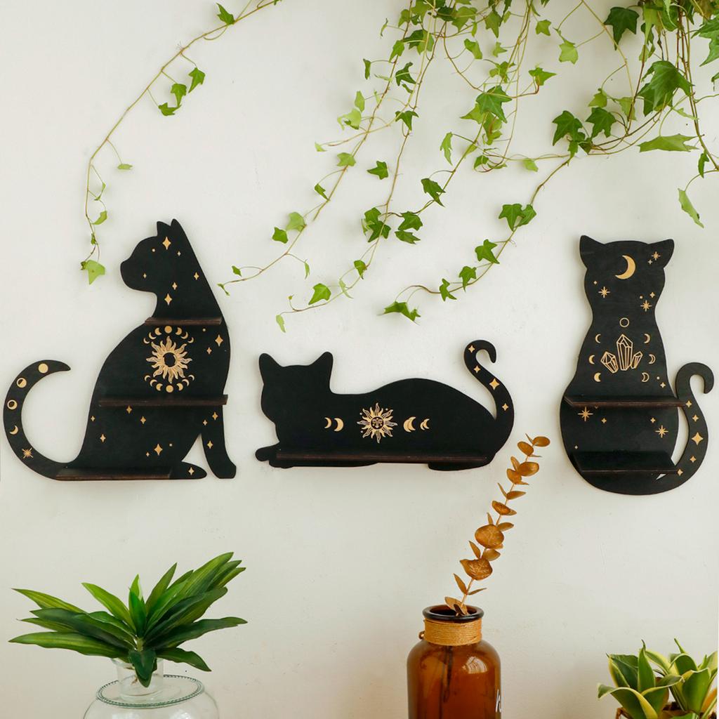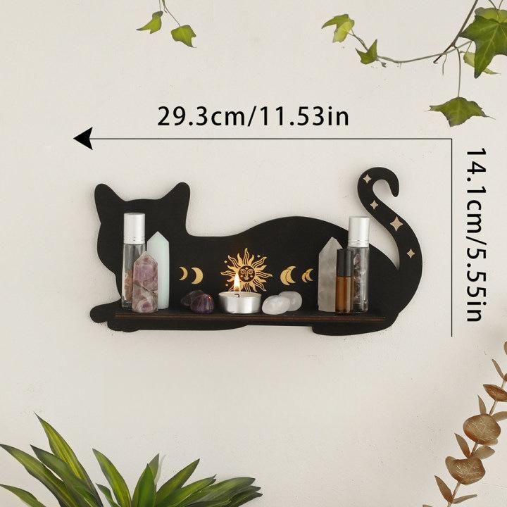Хрустальная полка-дисплей - черные милые плавающие полки с котом для декора на стену в спальне на Хэллоуин, полка-дисплей для кристаллов и камней, украшения для ведьмовской комнаты