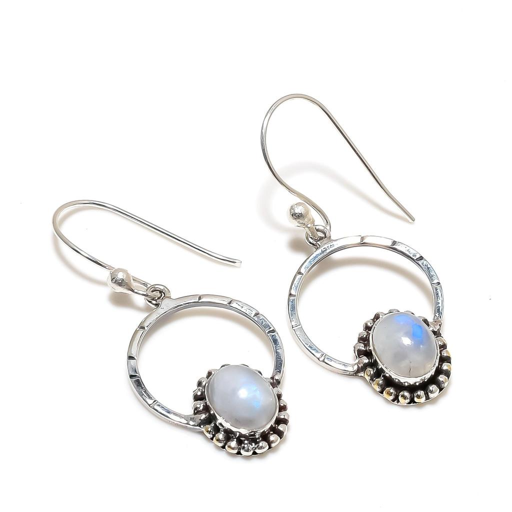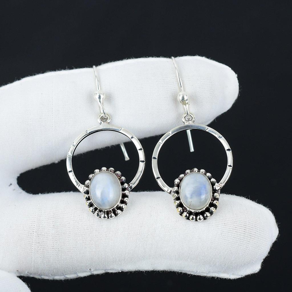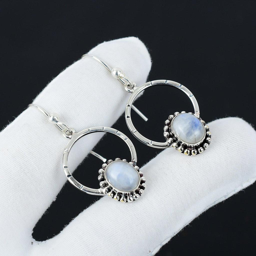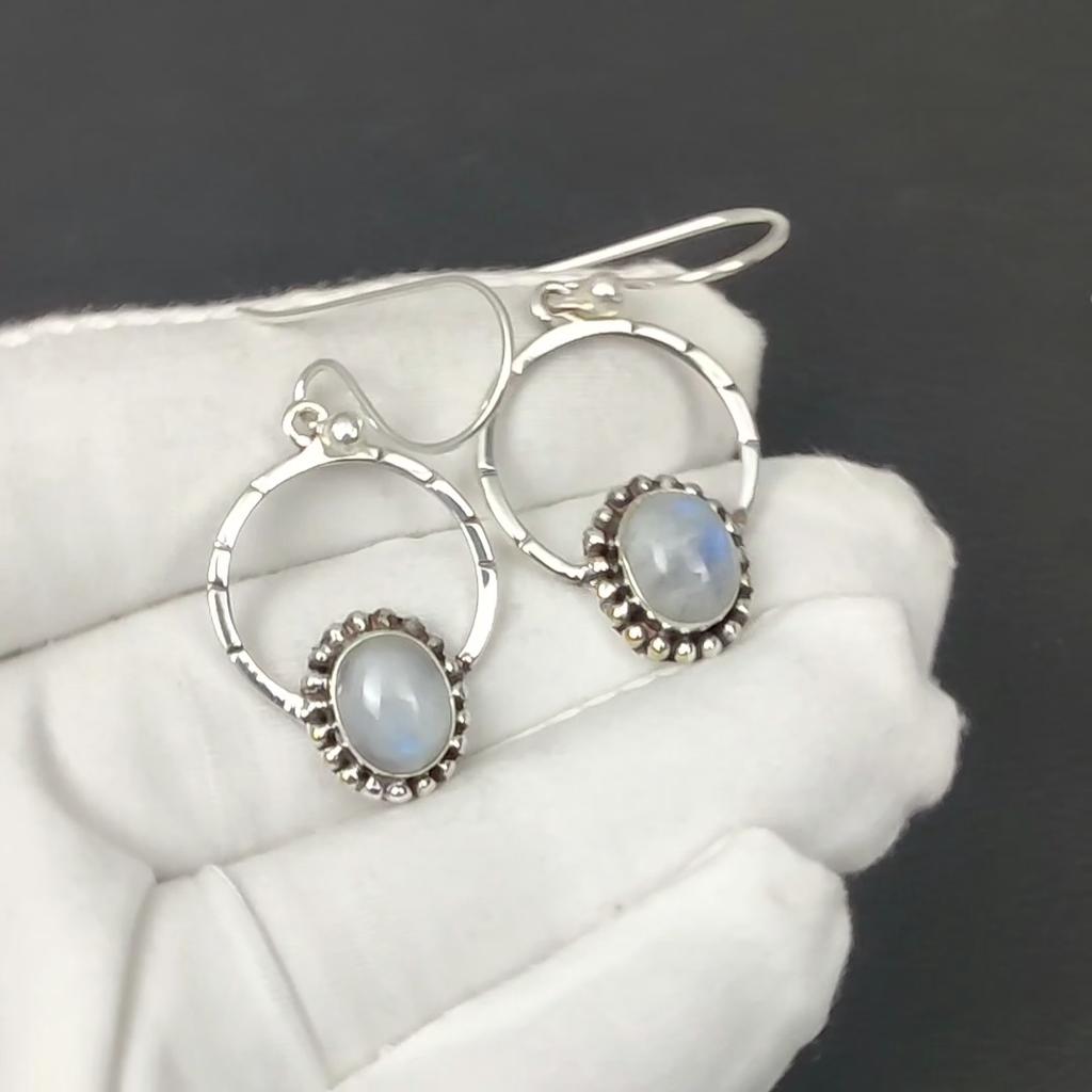 Серьги ручной работы из серебра 925 пробы с радужным лунным камнем