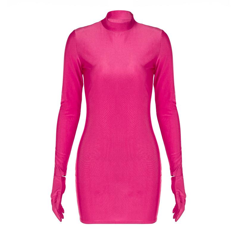 Однотонное мини-платье с длинным рукавом и перчатками, облегающее сексуальное уличное платье для вечеринок, полуводолазка, наряды Y2K, оптовая продажа