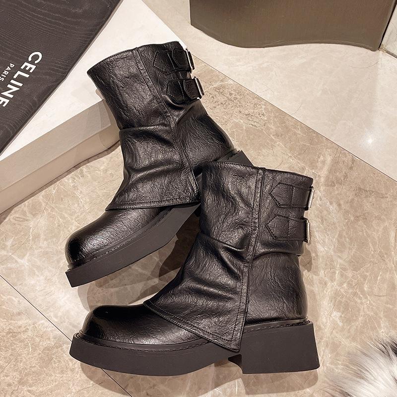 Винтажные британские ботинки Martin с пряжкой на ремне и большой головой 2024 года, новые смешанные и сочетающиеся между собой короткие ботинки, женские брюки, ботинки