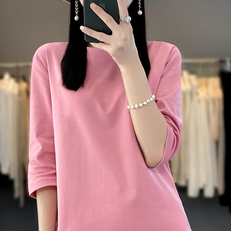 Весна и лето женская укороченная футболка с круглым вырезом из хлопка с коротким рукавом