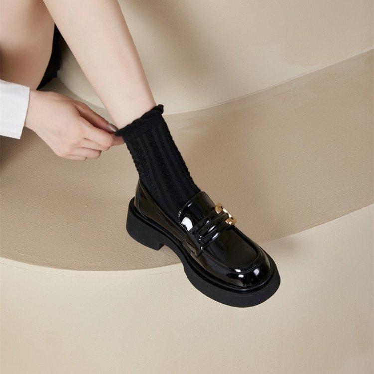 Маленькие кожаные туфли женские в британском стиле, одинарные туфли 2025 года, новые весенне-осенние популярные ретро-лоферы на платформе, черные женские туфли