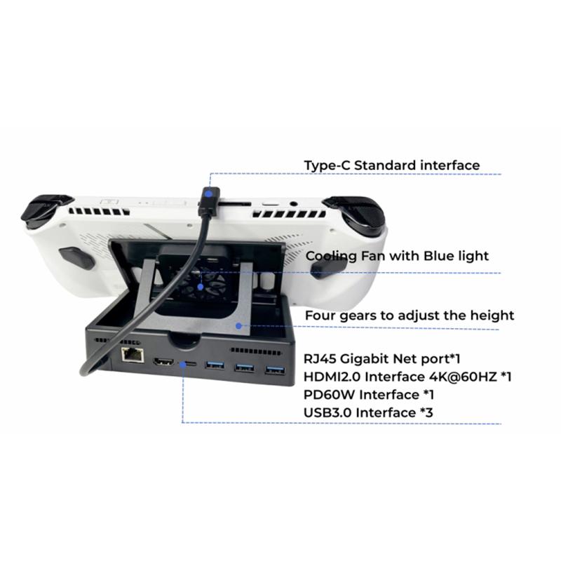 Для Asus ROG Ally Charging Dock Многофункциональная игровая консоль 6-в-1 Type-C док-станция с охлаждающим вентилятором