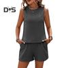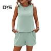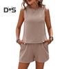 Стильный дизайн без рукавов: Этот женский костюм с топом без рукавов и шортами на эластичной талии выглядит просто, но стильно и подходит для повседневной носки и для разных типов телосложения.