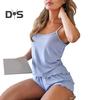 Стильный дизайн: Украсьте свой домашний гардероб этим однотонным костюмом с топом на подтяжках и шортами с оборками по низу.. Модный и милый штрих изогнутой оборки добавит вашему образу нотку тренда.