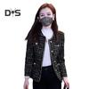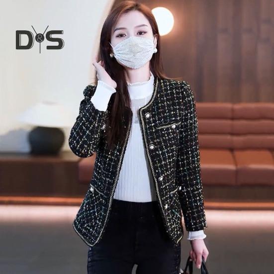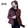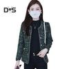 Женский твидовый пиджак с длинным рукавом, застегивающийся на пуговицы, укороченный блейзер с карманами, двубортное пальто в сетку для осени и зимы