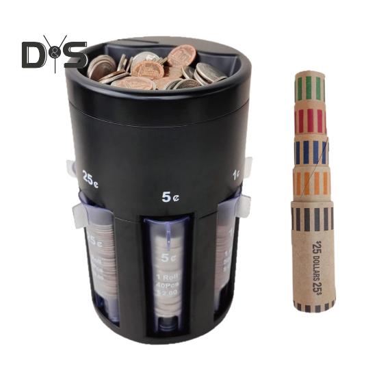 Точное разделение монет: Портативный сортировщик, разработанный для США. монеты, включающие 5 трубок для пенни, никелей, десятицентовиков, четвертаков и долларов; Каждая трубка вмещает 205 монет на общую сумму 42,50 доллара, что обеспечивает точную и эффективную обработку монет.