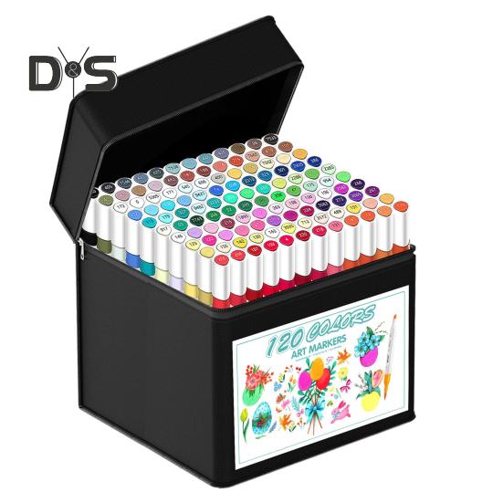 Портативный и удобный: Наши маркеры, упакованные в прочный и компактный футляр, обеспечивают удобное хранение и переноску всей вашей коллекции.. Дома, в студии или в дороге — все 120 цветов будут у вас под рукой, и вы сможете реализовать любые творческие замыслы.