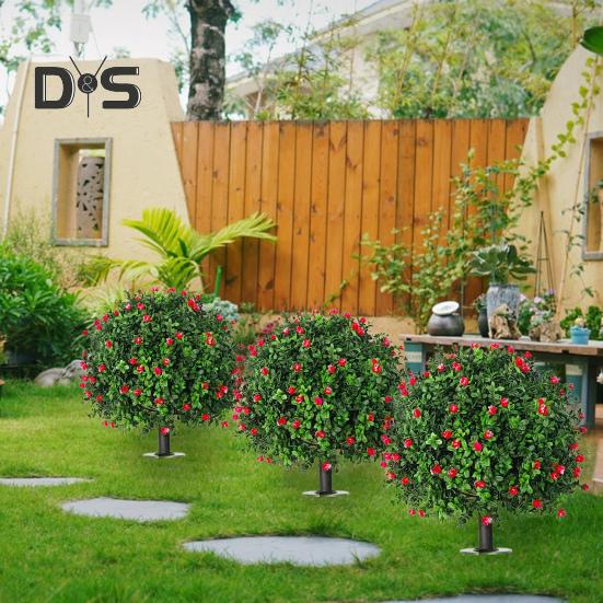 Реалистичное очарование: Наслаждайтесь красотой природы с этими шарообразными деревьями из самшита с красными цветами и шипами, укорененными в земле.. Густые листья и замысловатые цветовые вариации имитируют настоящие растения, а аутентичные стволы добавят нотку реализма любой обстановке.