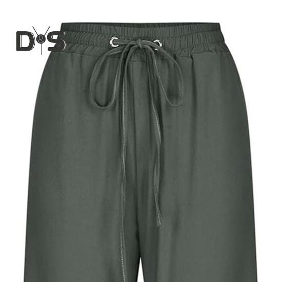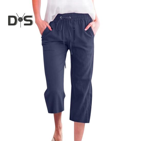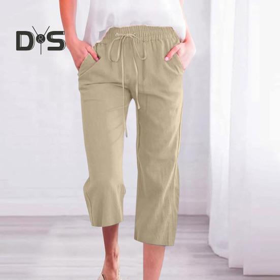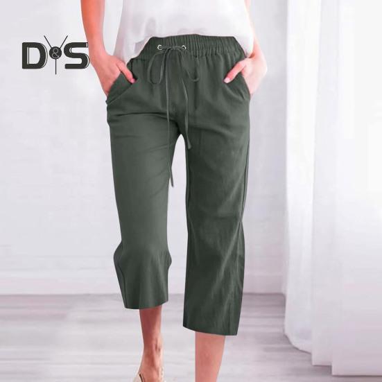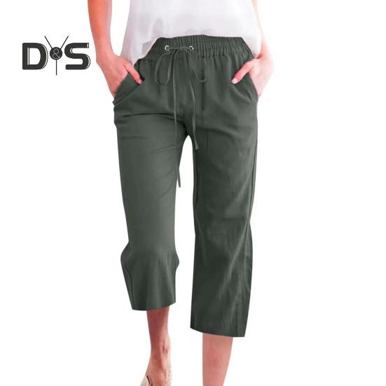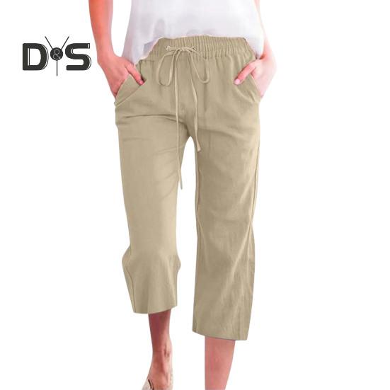 Представляем наши женские укороченные брюки, которые станут обязательным дополнением к вашему гардеробу.. Эти однотонные брюки выполнены в повседневном и дорожным стиле, который легко дополнит ваш образ.. Уникальный дизайн этих льняных брюк включает в себя микроэластичную ткань, обеспечивающую комфорт и подчеркивание фигуры.. Эти брюки со свободным силуэтом, эластичным поясом и затягивающимся шнурком на высокой талии обеспечивают одновременно стиль и комфорт.