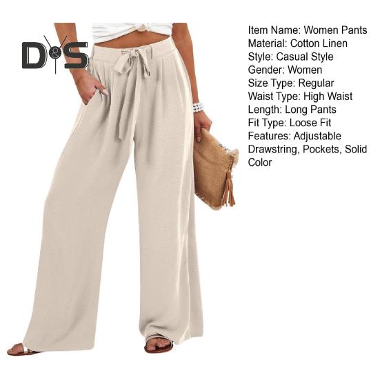 Легко усовершенствуйте свой стиль с нашими женскими широкими брюками из хлопка и льна, которые созданы для комфорта и элегантности.. Свободный крой и эластичный пояс обеспечивают привлекательный вариант, подходящий для различных случаев.