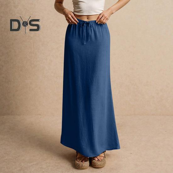 Стильный А-образный дизайн: Ощутите элегантность этой женской юбки А-силуэта со средней посадкой, выполненной в однотонном цвете и оснащенной шнурком, что придает ей шикарный и модный вид.