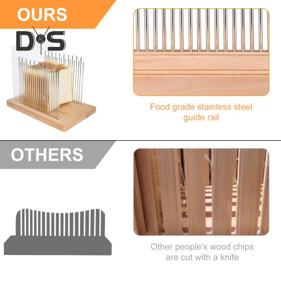 Регулируемая направляющая для нарезки из нержавеющей стали: Испытайте точность резки с нашей регулируемой конструкцией направляющих из нержавеющей стали. В отличие от традиционных деревянных направляющих, наши направляющие из нержавеющей стали устойчивы к износу, что исключает риск сколов на хлебе.. Наслаждайтесь идеальным результатом нарезки каждый раз, он долговечен и прост в очистке.