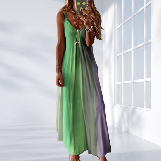 Модный дизайн с градиентными цветовыми блоками: Выделитесь с помощью шикарного градиентного и цветового дизайна этого платья, добавив нотку современной моды в ваш гардероб.. Уникальный узор излучает изысканность и изящество, что делает его универсальным изделием, подходящим для различных случаев.