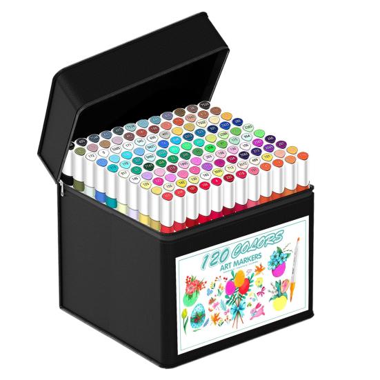 Портативный и удобный: Наши маркеры, упакованные в прочный и компактный футляр, обеспечивают удобное хранение и переноску всей вашей коллекции.. Дома, в студии или в дороге — все 120 цветов будут у вас под рукой, и вы сможете реализовать любые творческие замыслы.