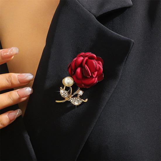 Брошь из искусственной жемчужной ткани в виде розы, искусственный цветок, брошь-булавка для женщин, стразы, лацкан, аксессуары для одежды, пальто, шляпа, сумка